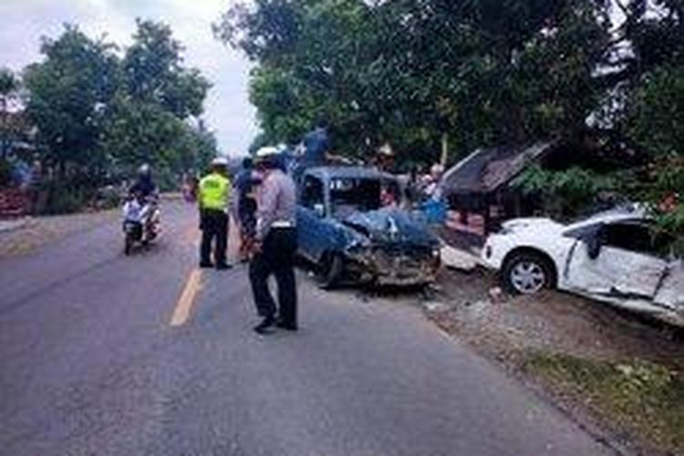 Honda Brio Terlempar, Bodi Kiri Lecek, Ditinju Toyota Kijang Muat Batu Nisan