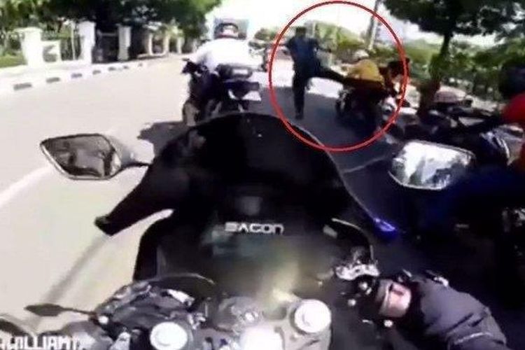 Honda CBR250RR kena tendang Paspampres saat masuk ring 1 Istana Negara. Pemotor jatuh tersungkur saat mau pergi
