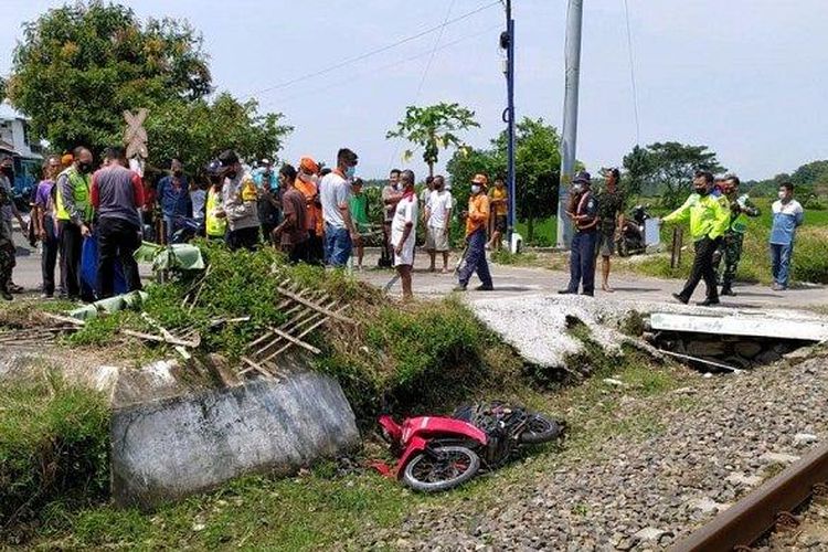 Yamaha Vega R Remuk, Tak Sadar KRL Melintas, Pemotor Terpental Sampai 8 Meter