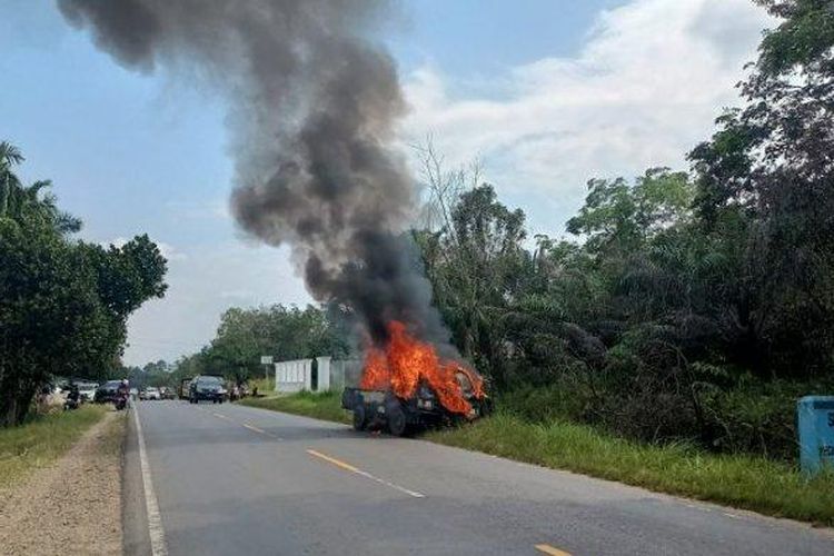 Mitsubishi L300 terbakar secara misterius ketika angkut barang pindahan, api disebut muncul dari bak, satu motor ikut ludes