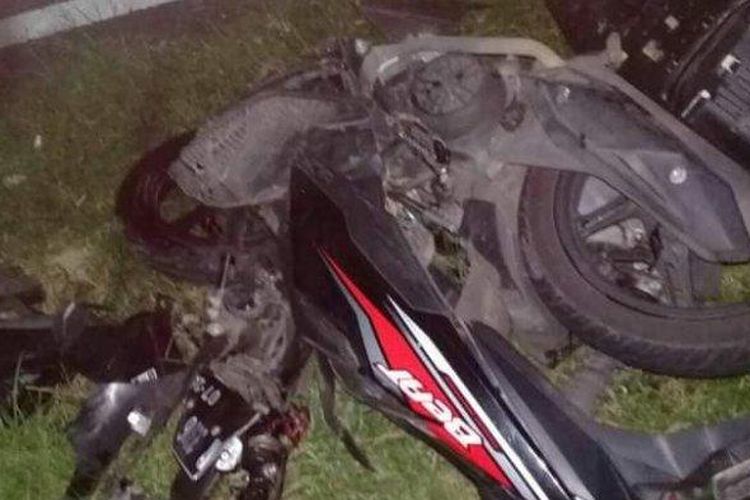 Honda BeAT rusak parah setelah berakhir oleng dan masuk ke jalur berlawanan. Bodi ringsek dihantam Brio