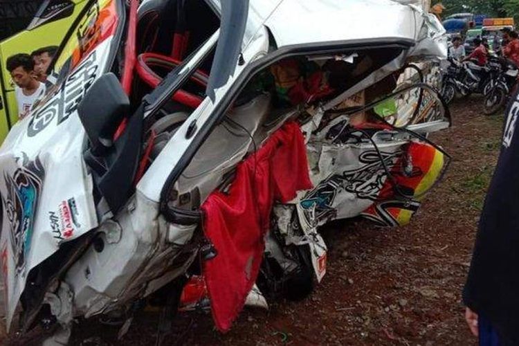 Isuzu Traga kabin amburadul setelah terlibat kecelakaan dengan sebuah truk Fuso. Bermula ban selip saat menyalip