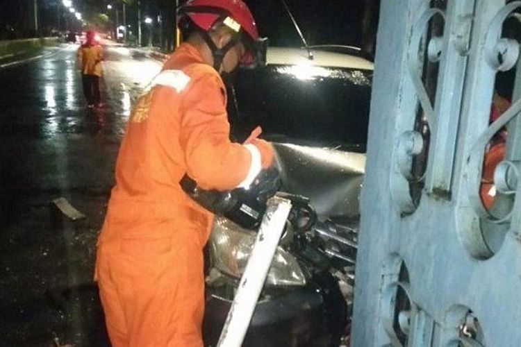 Nissan Livina X-Gear berubah bentuk, tabrak pagar TMII hingga tersangkut, saksi lihat pengemudi sibuk main gadget