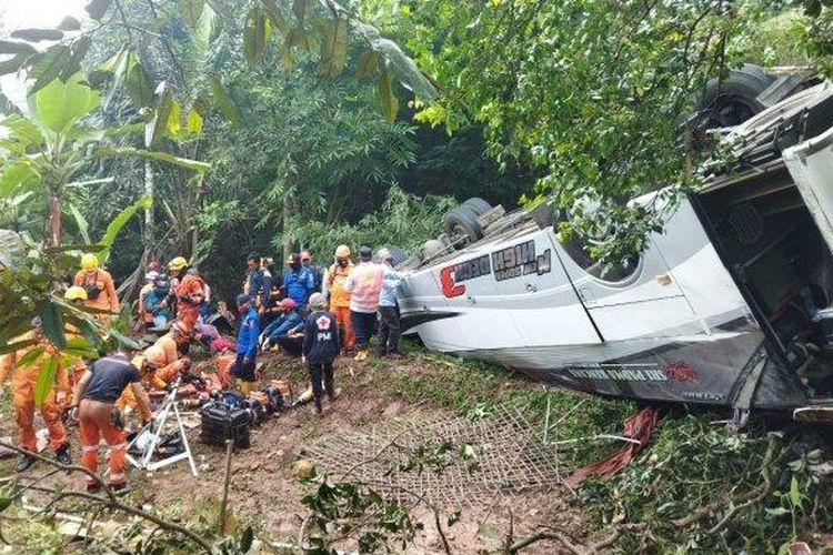 Korban tewas kecelakaan maut bus pariwisata Sri Padma Kencana kayang di jurang Sumedang tambah dua orang, total sudah 29 penumpang