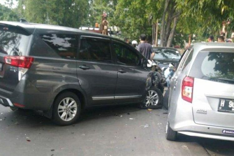 Tabrakan beruntun Kijang Innova Dua Unit, Sigra, L300, GO+ Panca, Supra X dan Blade di kota Semarang, ulah mahasiswa