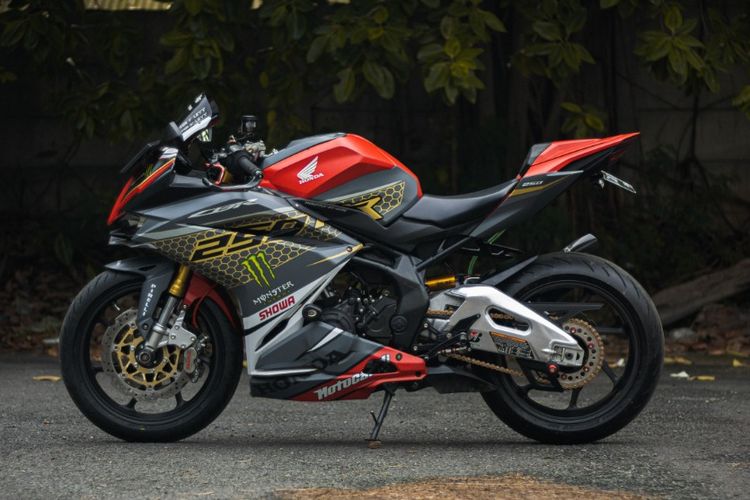 Tampilan Honda CBR250RR bisa lebih kekar dengan penggunaan double disk. Bujet mulai Rp 10-15 juta, upside down tetap standar.