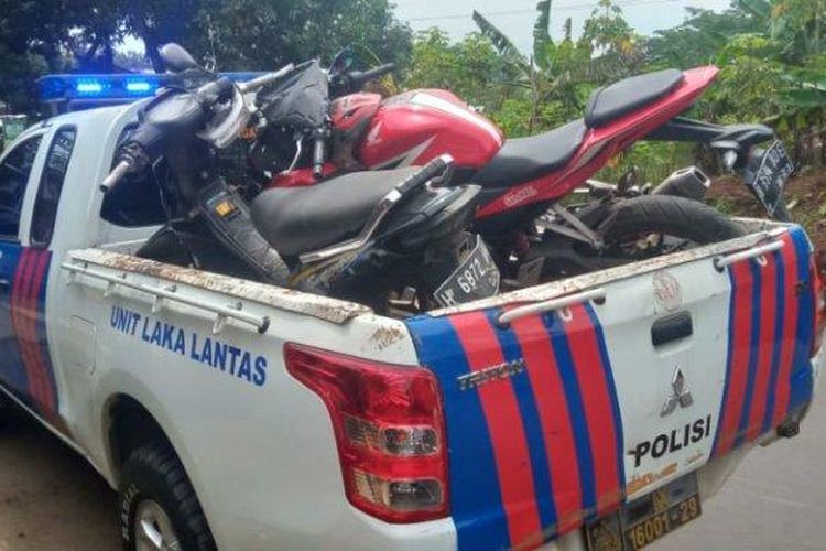 Honda CBR150R babak belur setelah terlibat adu tubruk dengan Supra dan tembok. Pemotor langsung dievakuasi