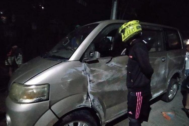 Suzuki APV Lebam Bodi Kiri, Baret Diparut Beton, Pengemudi Menghilang di Semak-semak