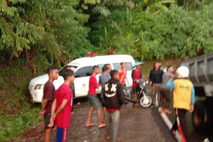 Toyota Hilux Ambulans sambar motor lalu hajar tebing di Salukaha, Kalukku, Mamuju, pasien rujukan yang dibawanya meninggal