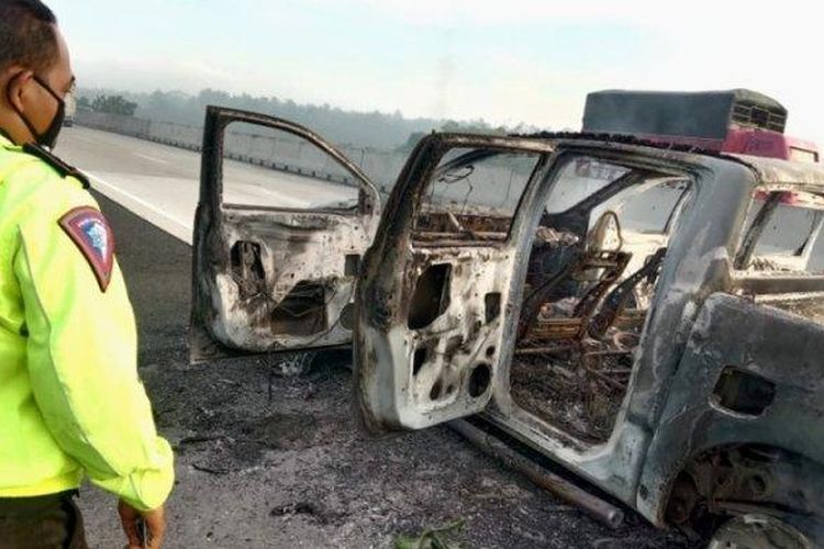Ford Ranger Gosong Luar Dalam, Tersisa Rangka, Api Keluar Saat Dipacu di Jalan Tol