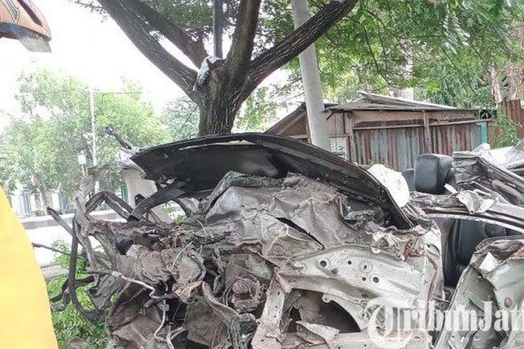 Suzuki Ertiga amburadul setelah dihajar kereta api hinga terseret dan terlempar. Akibat kecelakaan ini, dua orng meninggal dunia