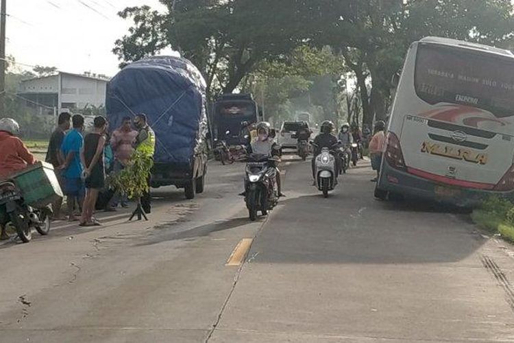Kecelakaan Bus PO Mira seruduk mikrobus karena dapat bola tanggung saat ngebut, kaget di depan ada Mitsubishi L300 mogok di Ringroad Utara Sragen