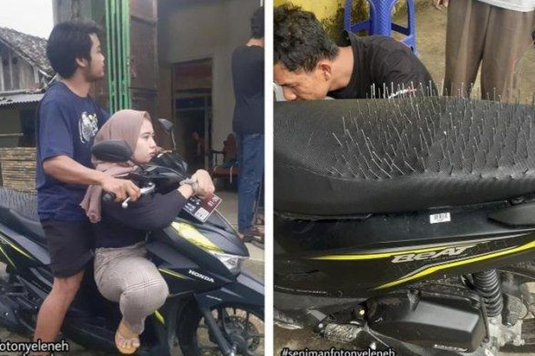 Aksi kocak dilakukan pemilik Honda BeAT ini setelah setengah joknya ditanami paku. Aksinya singgung pacar yang posesif