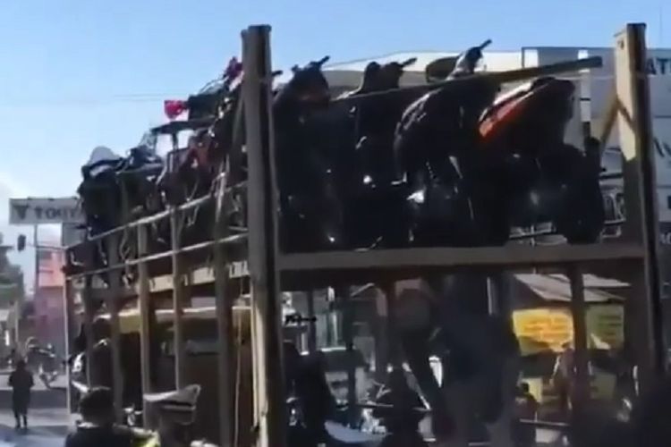 Viral puluhan motor diangkut ke truk setelah kena razia di Lembang, Jawa Barat. Netizen sebut seperti motor baru diantar ke dealer