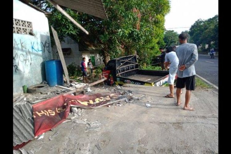 Daihatsu Gran Max dibawa sambil tidur, melenceng hajar tiang rumah warga lalu anjlok ke got, pengemudi malah nanya 'ada apa'