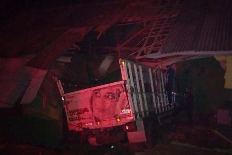Sebuah truk meluncur bebas di jalan menurun hingga menjebol sebuah tembok madrasah. Sopir dan dua siswa meninggal dunia