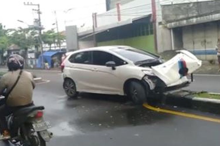 Jazz Remuk Nyangkut Pembatas, Sundulan Beruntun Panther, Calya dan Truk Box di Solo
