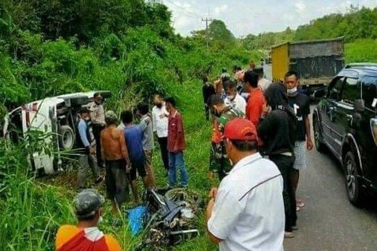 Toyota Kijang Innova gelimpang usai hajar Yamaha V-Ixion hingga patah sasis di Muara Enim, satu siswa tak bernyawa