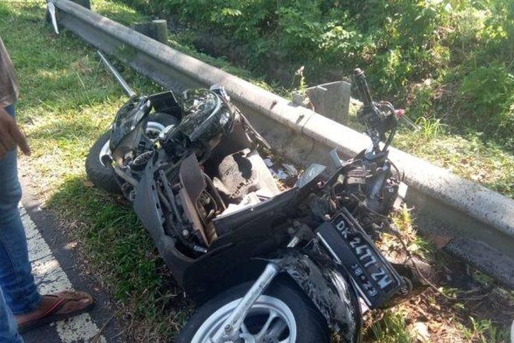 Honda Scoopy remuk parah setelah beradu wajah lawan pikap dari lawan arah. Bodi depan sampai belakang remuk