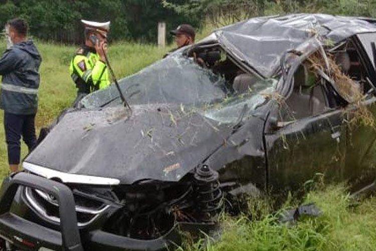 Toyota Avanza oleng lalu koprol di ruas tol Medan-Tebing Tinggi, terlempar keluar hingga tak berbentun, empat orang tewas