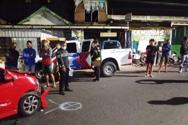 Toyota Agya rontok bodi depan setelah dihantam pemotor yang melaju terlalu ke kanan dari lawan arah. Diduga pemotor kurang konsentrasi