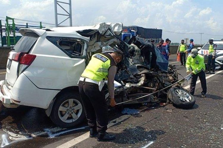 Kecelakaan maut Toyota Kijang Innova di ruas tol Kayuagung-Palembang KM 348, kondisi terbelah, mesin sampai kabin terpotong, 3 nyawa melayang