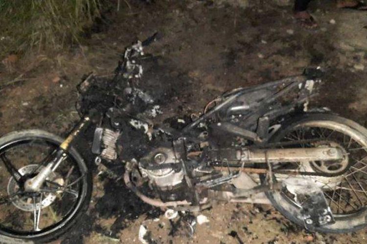 Yamaha Jupiter MX sengaja dibakar oleh wanita sambil ngomel-ngomel, padahal masih kredit, suami disebut keterlaluan