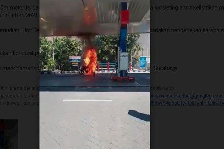 Yamaha Scorpio terbakar habis usai isi BBM di SPBU Gubeng, Surabaya, Jawa Timur, api muncul saat distarter