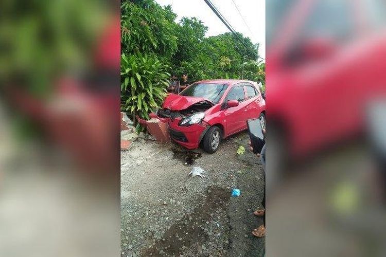Honda Brio Berakhir Tusuk Beton, Oleng Kanan Tebas Vario, Satu Luka Berat