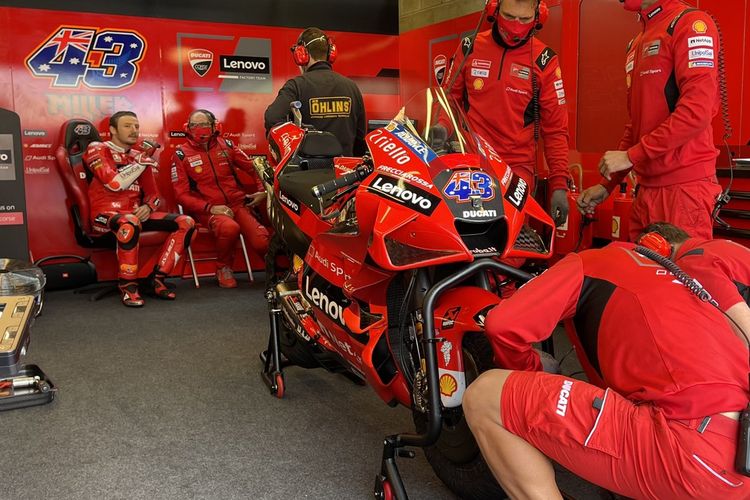 Pemenang MotoGP Jerez, Jack Miller menjadi yang tercepat saat sesi free practise (FP) 1 MotoGP Perancis di sirkuit Bugatti, Le Mans (14/05/2021).