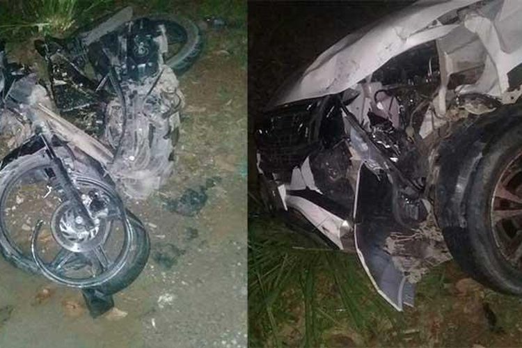 Daihatsu Terios baru remuk bagian depan setelah beradu lawan Honda BeAT yng dikendarai remaja usia 18 tahun.