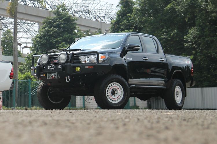 Toyota Hilux Revo milik Makki Darryl ini menggunakan pelek yang terbilang langka dan disesuaikan dengan kaki-kaki yang jinjit