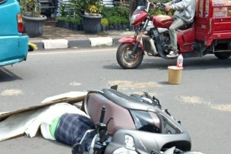 Honda Scoopy Tergeletak, Pengendara Tertelungkup, Roda Bus TransJakarta Pencabut Nyawa