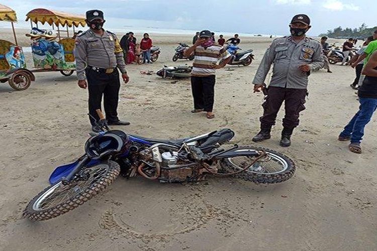Yamaha WR 155R dibuat wheelie dan berakhir tabrak V-Ixion di pantai. Akibatnya satu orang meninggal dunia