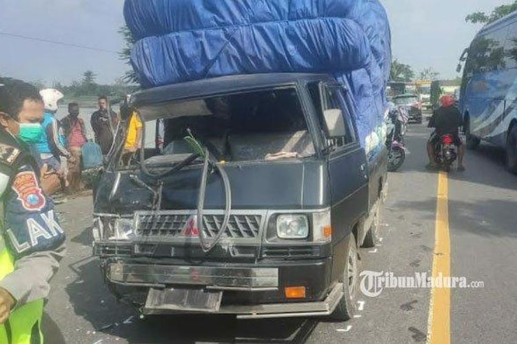 Mitsubishi L300 asal nyalip hingga berujung tabrak Honda BeAT dan Vario 125 dari arah berlawanan, dua pelajar tewas di Widang, Tuban