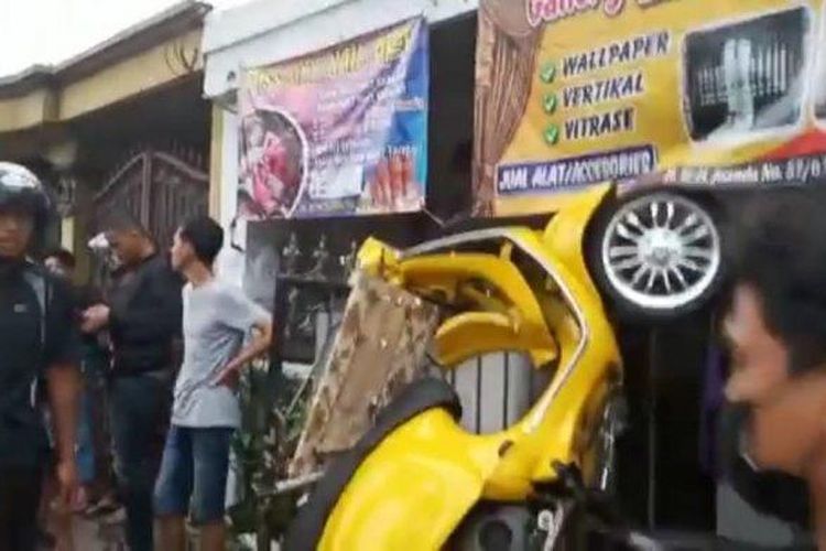 Vespa Sprint 150 i-Get Tatap Langit, Roda Depan Nyangkut Pagar, Nyawa Mak Onah Tak Tertolong