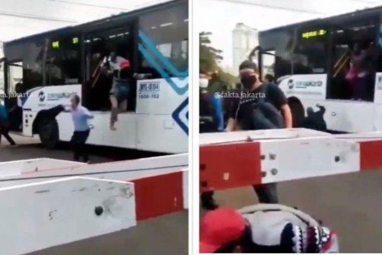 Bus Transjakarta mendadak mogok di jalur kereta api saat sedang beroperasi. Para penumpang langsung berhamburan keluar