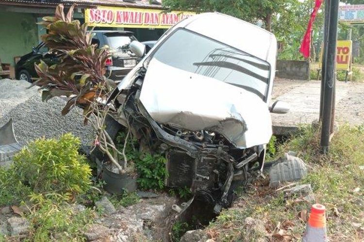 Kecelakaan tunggal Toyota Avanza di dekat Polres Kulon Progo, tusuk tiang lampu penerangan jalan, mental teronggok di parit