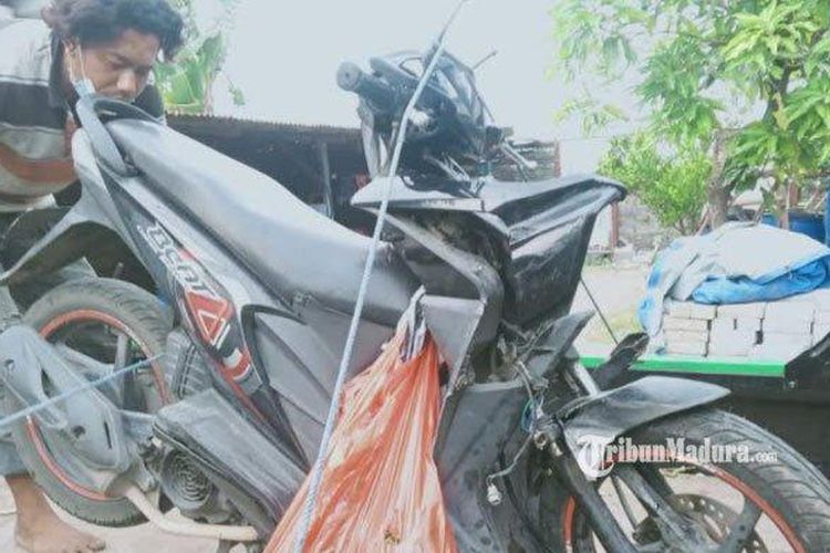 Mitsubishi L300 mendadak alami masalah setir ngunci, melintir putar arah, seketika ditebas Honda BeAT hingga sasis melengkung