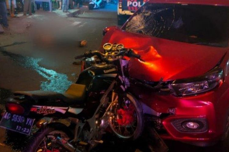 Honda Brio Bonyok, Ninja 150R Nyangkut di Muka, Pengendara Berpulang Dinihari