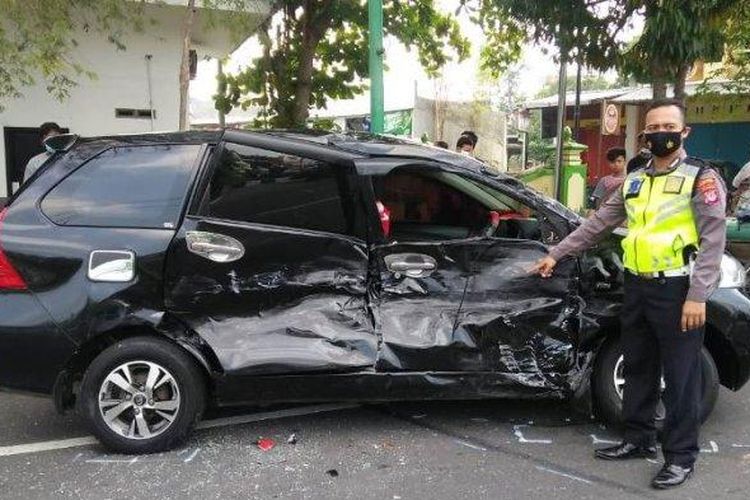 Toyota Avanza dan becak diterjang mobil pemadam kebakaran. Pengemudi dan penumpang Avanza mengalami luka-luka