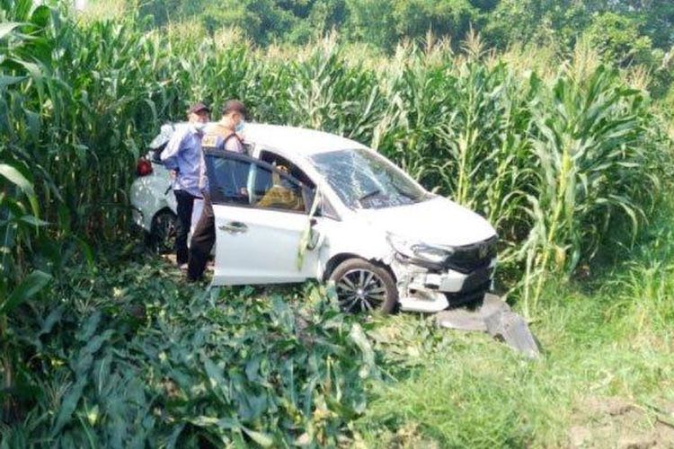 Honda Mobilio loncat ke ladang jagung setelah sabet tiang listrik akibat pengemudi sempat pingsan saat menyetir