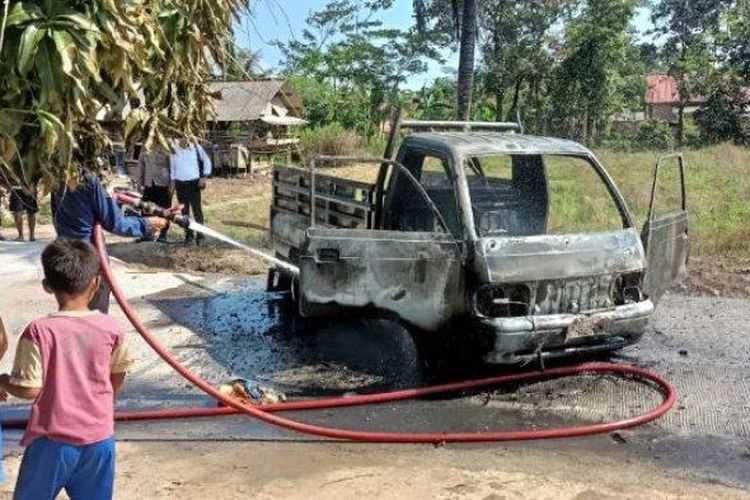 Mitsubishi Colt T120SS terbakar hingga gosong jadi bangkai di Natar, Lampung Selatan, api berasal dari bak belakang