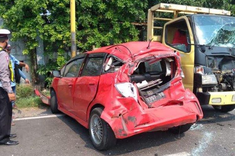 Kecelakaan beruntun Honda Jazz, Toyota Rush, Isuzu Panther dan dua truk yang dihajar belakang dump truck di Krian, Sidoarjo