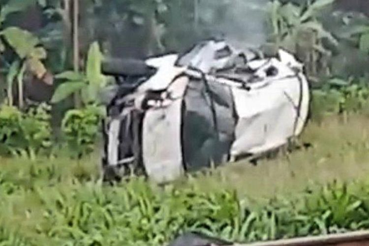 Honda BR-V Babak Belur Tergeletak, Disundul Kereta Api di Subang, 1 Meregang Nyawa