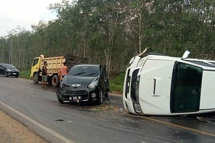 Dua toyota Hilux, Ayla dan Xenia terlibat kecelakaan beruntun bermula satu Hilux nyalip lewat bahu jalan sebelah kiri karena macet