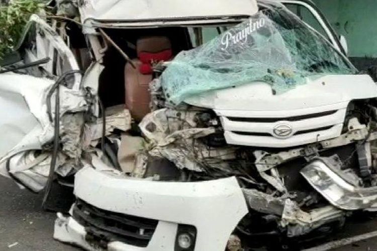 Daihatsu Luxio rusak parah setelah terlibat kecelakaan di Tasikmalaya usai oleng dan disambut Bus Budiman. 1 penumpang tewas