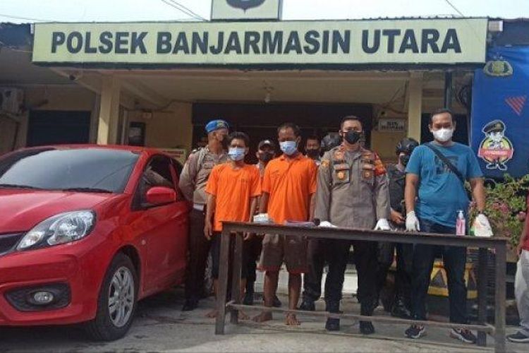 Honda Brio Dipajang di Polsek, Dua Pria Dipakaikan Baju Oranye, Dikawal Ketat Polisi