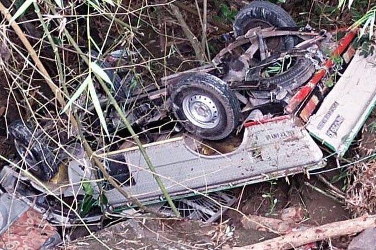 Mitsubishi Colt T120 Jungkir Balik ke Jurang, Mencancap di Bawah Koloni Pohon Bambu