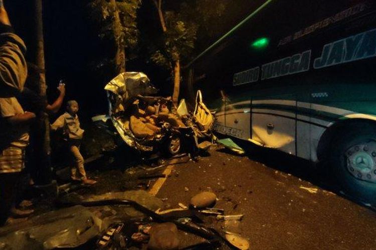 Bus PO Sudiro Tungga Jaya Nyalip Libas Xenia, Brio dan Avanza, Amburadul 6 Orang Tewas